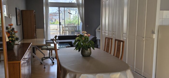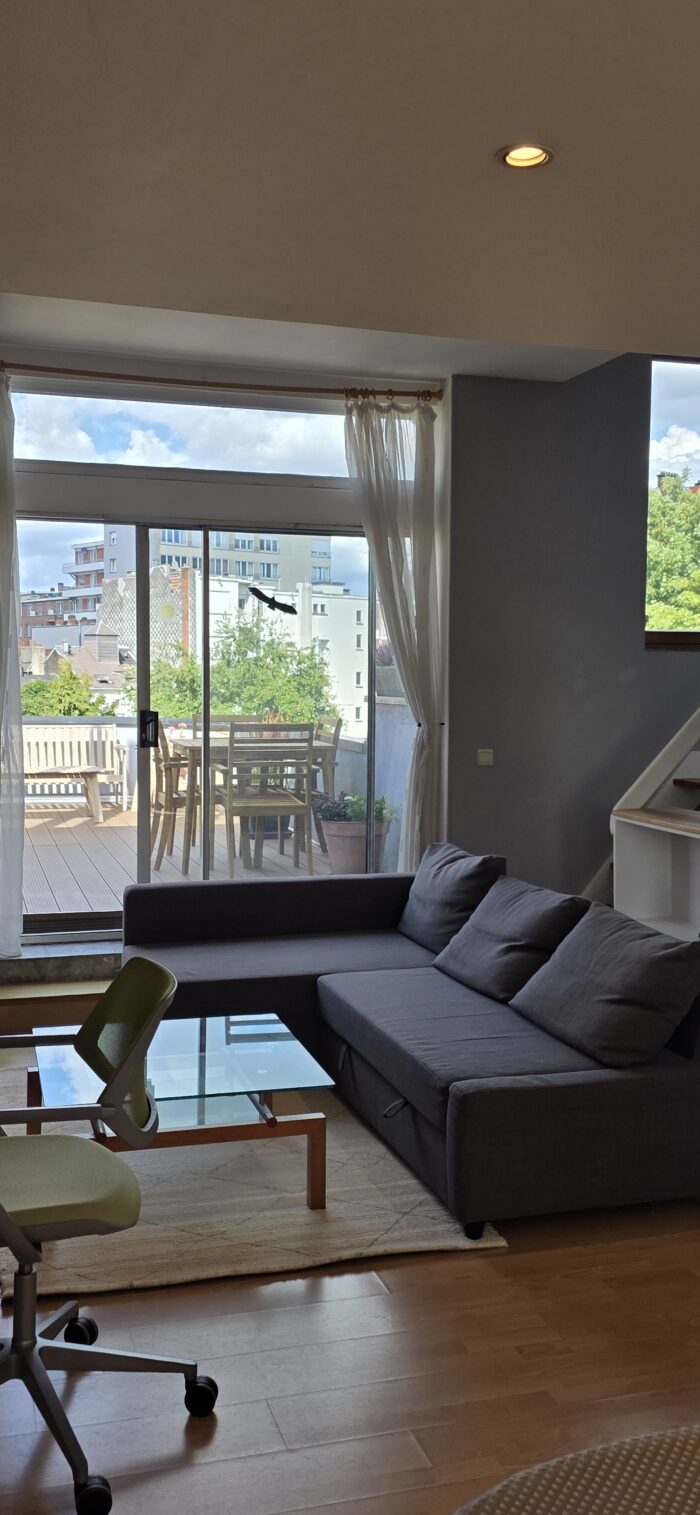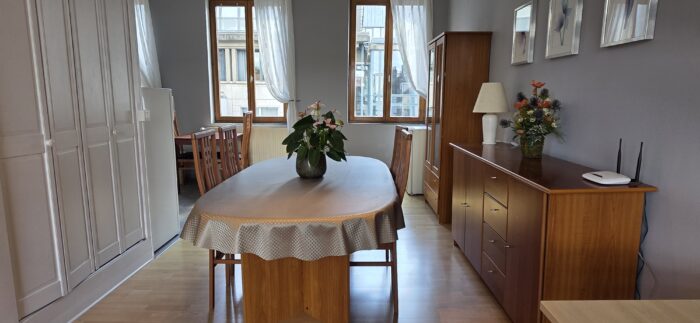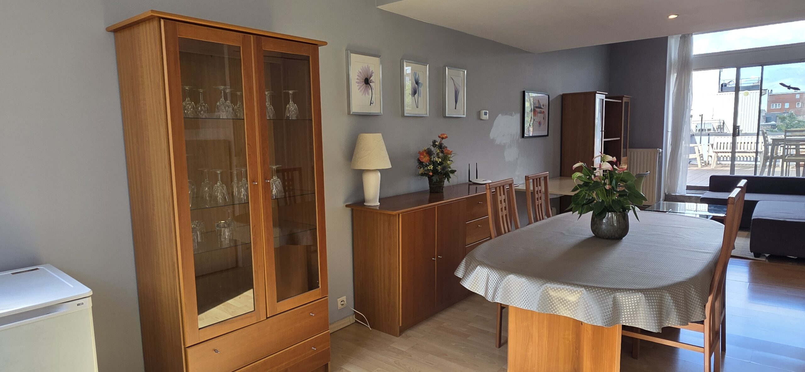 The most spacious flat of the Stevin Residence is located on the top floor. This bright penthouse apartment covers 3 levels and includes a large living room with a dining table and TV corner, a spacious kitchen, a bathroom, a separate toilet and even a nice roof terrace.